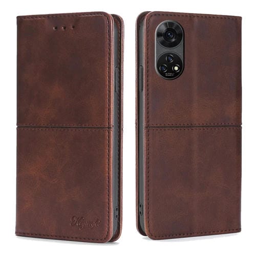 Funda de Cuero Magnética para ZTE Anshin Family con Textura de Vaca (Marrón Oscuro)