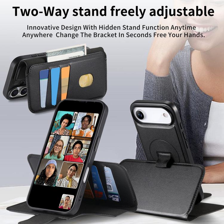 Funda de cuero MagSafe con correa de agarre para el dedo para iPhone Air (negra)