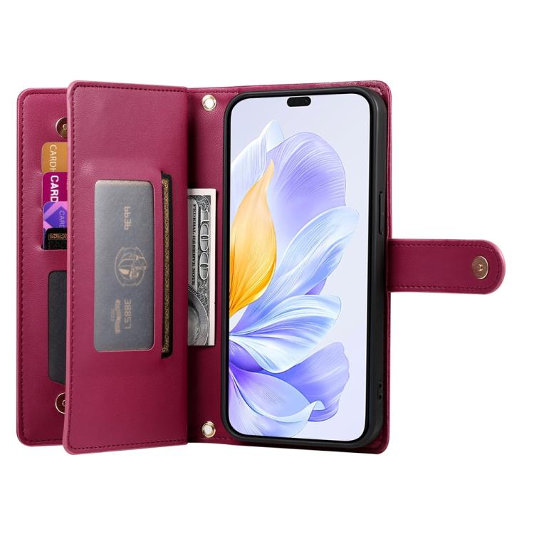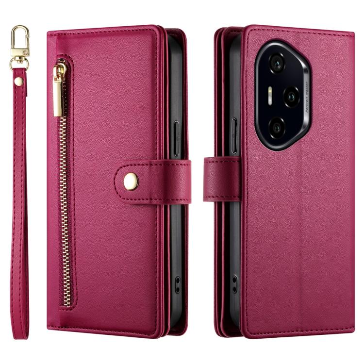 Funda de Cuero para Honor 300 Pro y 300 Ultra con 9 Ranuras para Tarjetas y Cremallera (Rojo)
