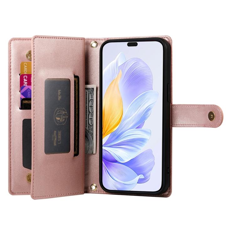 Funda de Cuero para Teléfono Honor 300 Pro/300 Ultra con 9 Ranuras para Tarjetas y Cremallera (Rosa)