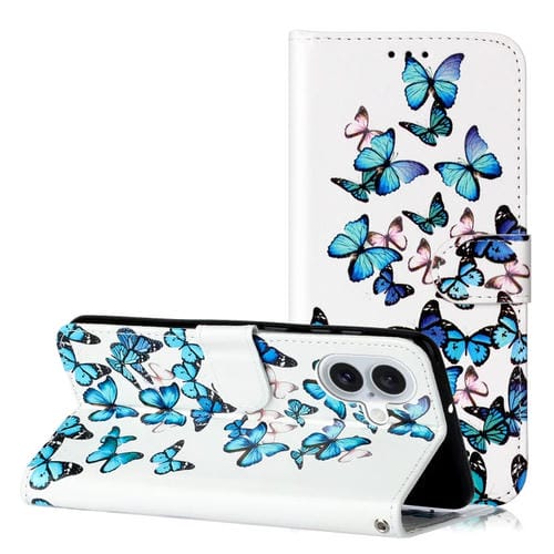 Funda de Cuero para Teléfono iPhone 16 Plus Patrón Mármol Dibujo Colores (Pequeñas Mariposas Azules)