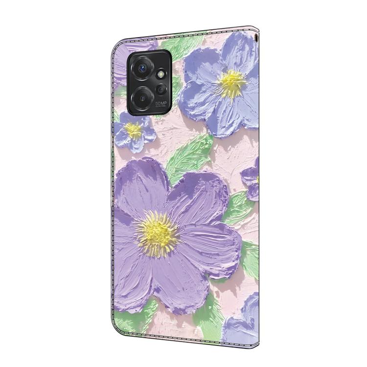 Funda de Cuero pintada a mano Motorola Moto G Power 5G (2023) con Flores Moradas