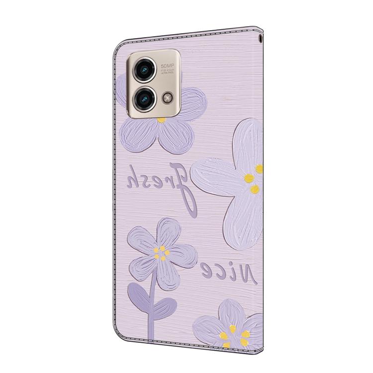 Funda de Cuero Pintada a Mano para Motorola Moto G Stylus 5G (2023) Flores (Morado Oscuro)