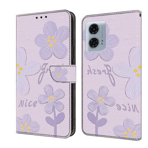 Funda de Cuero Pintada a Mano para Motorola Moto G24 Power (Flores Morado Oscuro)