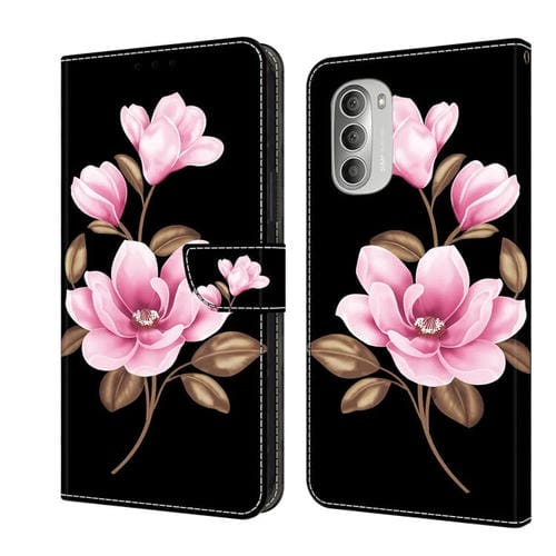 Funda de Cuero Pintada a Mano Motorola Moto G51 con Diseño Flores Negras