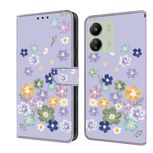 Funda de Cuero Pintada a Mano para Redmi 13C (Floral Morado)