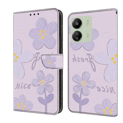 Funda de Cuero Pintada a Mano para Redmi 13C (Flores de Color Morado Oscuro)