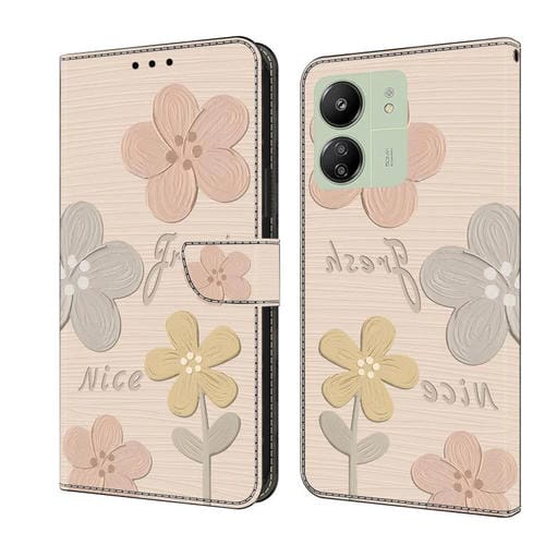 Funda de Cuero Pintada a Mano para Redmi 14C 4G (Flores Beige)
