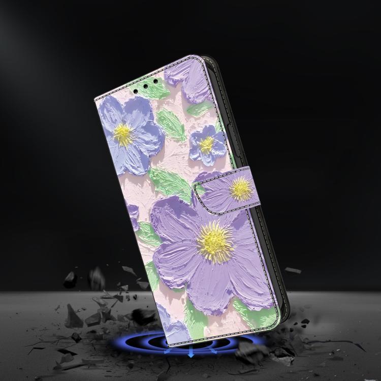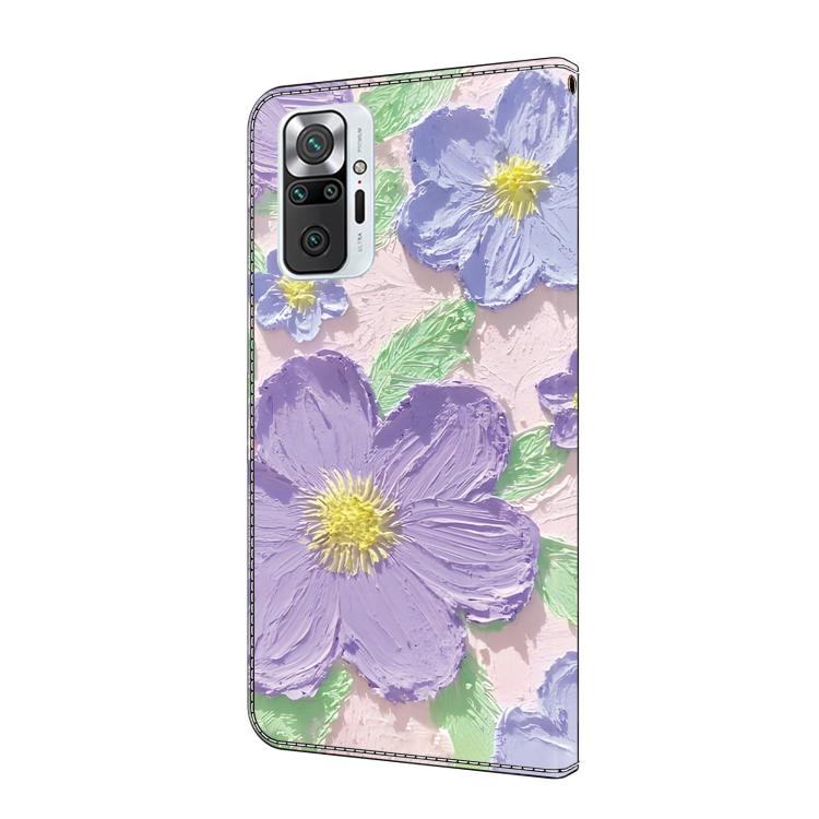 Funda de Cuero Pintada a Mano para Redmi Note 10 Pro 4G (Pintura al Óleo con Flores Moradas)