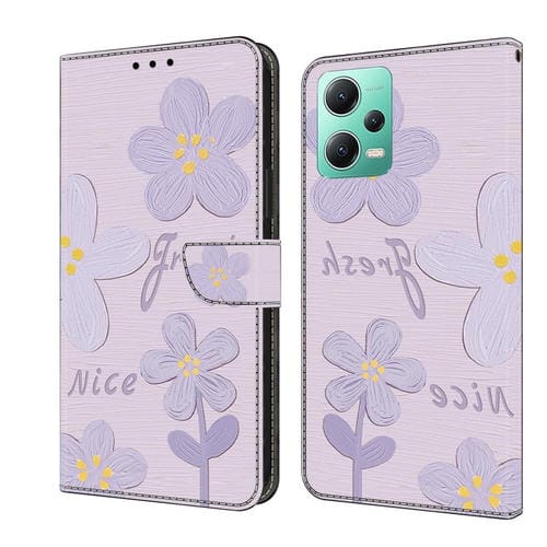 Funda de Cuero Pintada a Mano para Redmi Note 12 5G Global Fresh (Flores de Color Morado Oscuro)