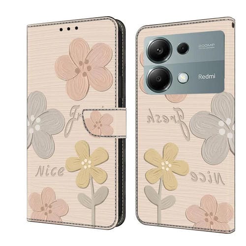 Funda de Cuero Pintada a Mano para Redmi Note 13 Pro 4G (Flores Beige)