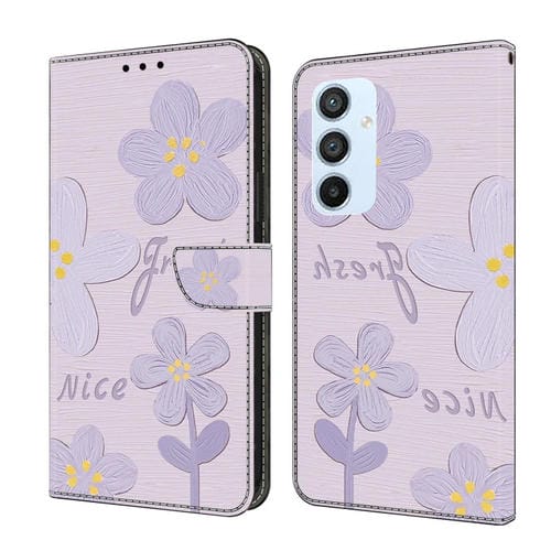 Funda de Cuero Samsung Galaxy A54 5G Pintada a Mano con Flores Lilas