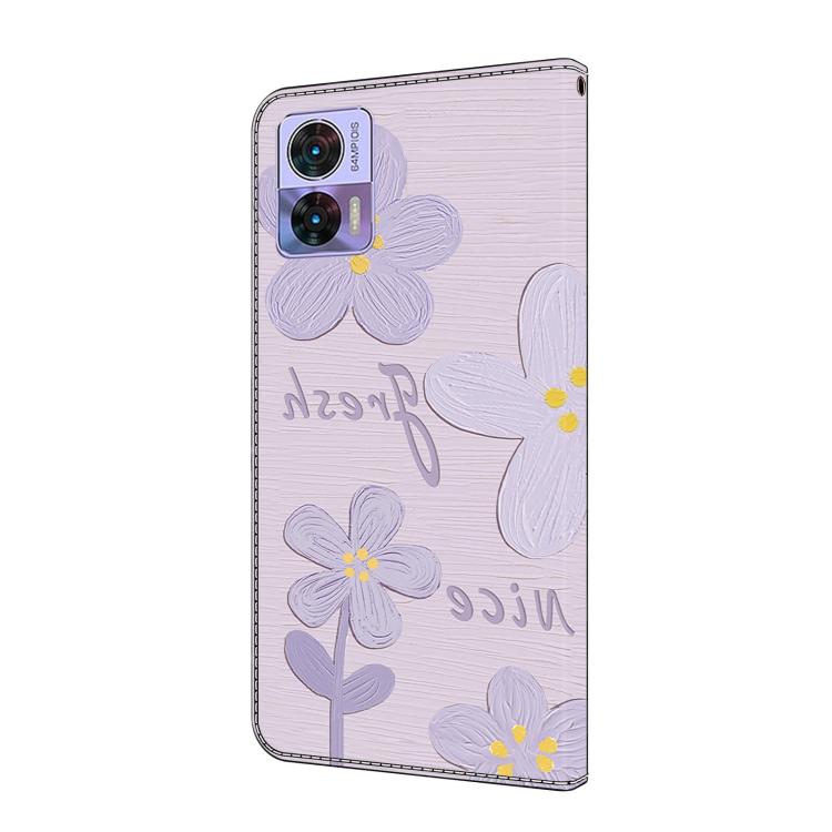 Funda de Cuero Pintada a Mano para Motorola Edge 30 Neo con Flores (Morado Oscuro)