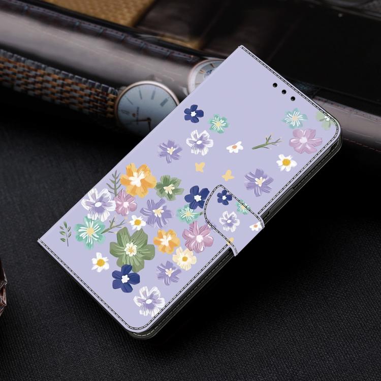 Funda de Cuero Pintada a Mano para Motorola Moto E13 (Floral Morado)