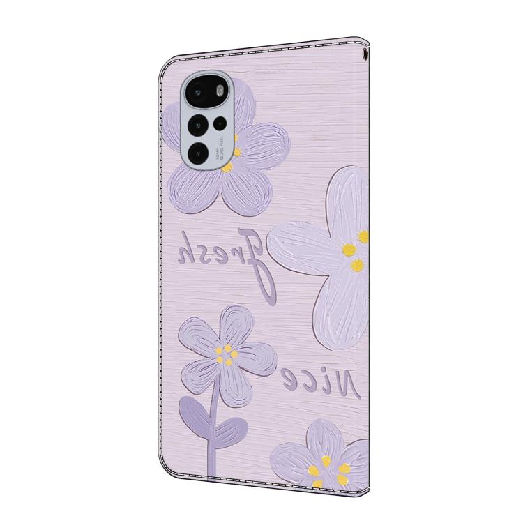 Funda de Cuero Pintada a Mano Motorola Moto G22 con Flores (Morado Oscuro)