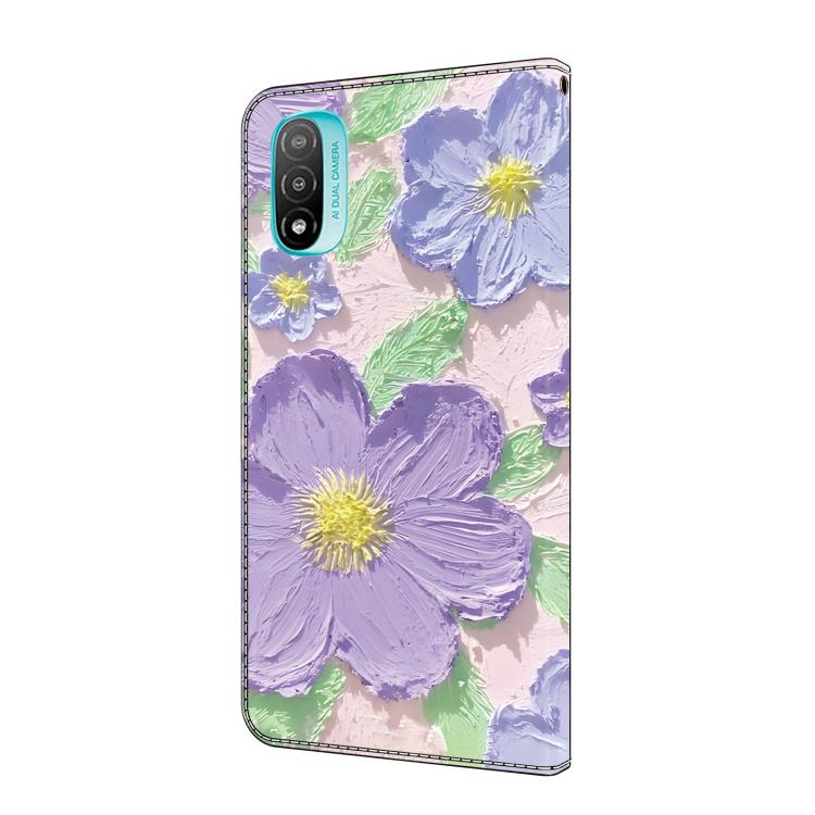Funda de Cuero Pintada al Óleo para Motorola Moto E20 (Flores Moradas)