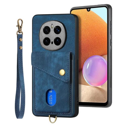 Funda de Cuero Plegable con Correa y Tarjetero para Honor Magic7 Pro (Azul)