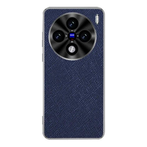 Funda de Cuero Pu con Textura Cruzada y Borde Plateado para Vivo X100S Pro (Azul Zafiro)
