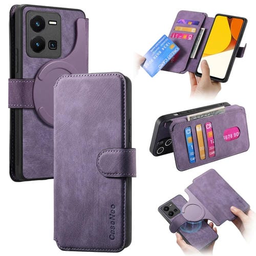 Funda de Cuero Retro Antirrobo con Rfid y Magsafe para Vivo Y35 5G (Morado)