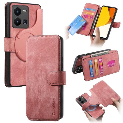 Funda de Cuero Retro Antirrobo con Rfid y Magsafe para Vivo Y35 5G (Rosa)
