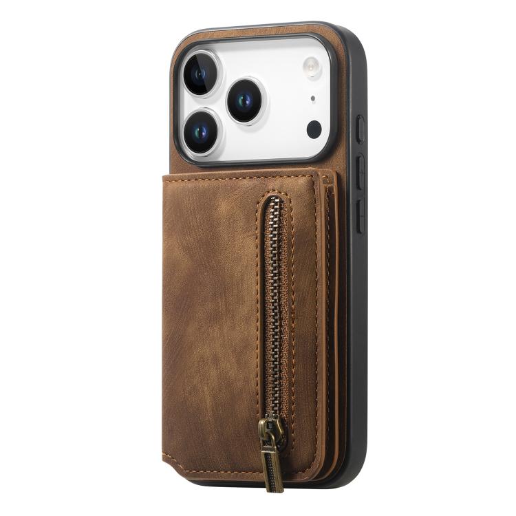 Funda de cuero retro con cremallera para iPhone 17 Pro Max (marrón)