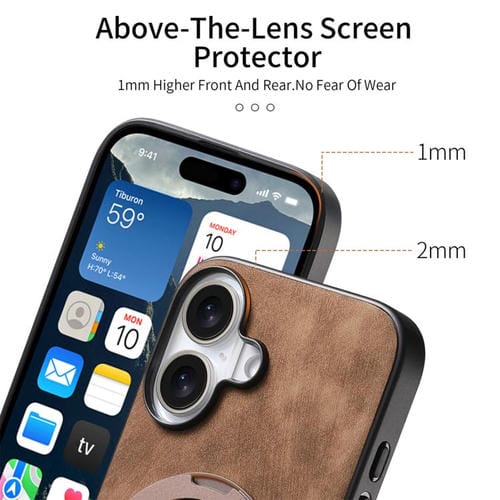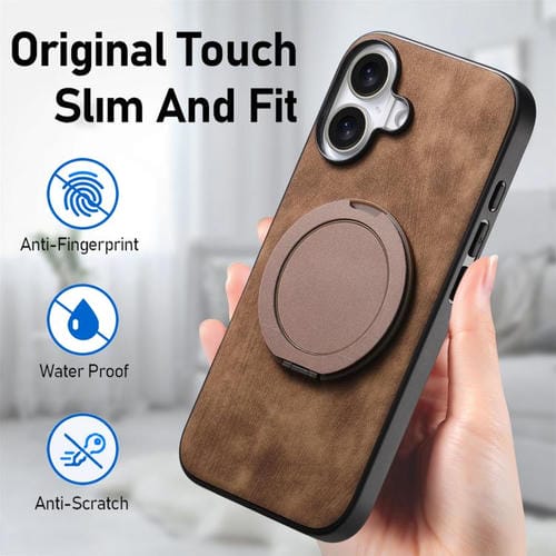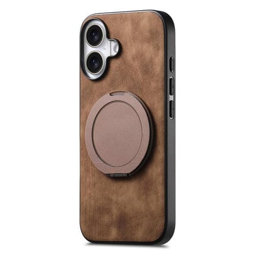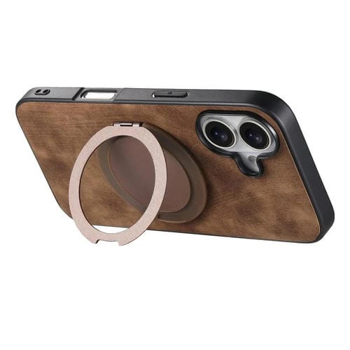 Funda de cuero retro con soporte giratorio redondo para iPhone 17 (marrón)