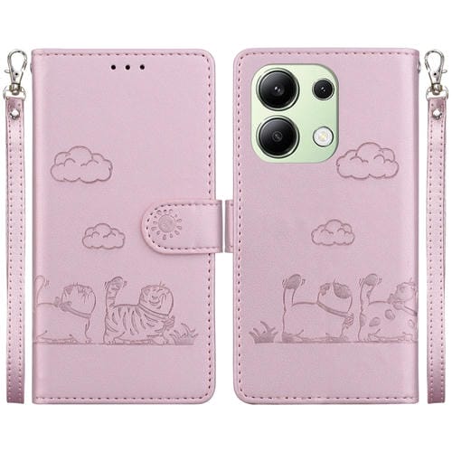 Funda de Cuero Rfid con Diseño de Gatos Lindos para Redmi Note 13 4G (Oro Rosa)