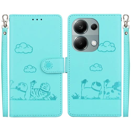 Funda de Cuero Rfid con Diseño de Gatos para Redmi Note 13 Pro 4G (Verde)