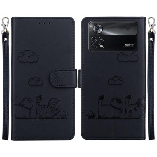 Funda de Cuero Rfid con Diseño de Gatos para Xiaomi Poco X4 Pro 5G (Negra)