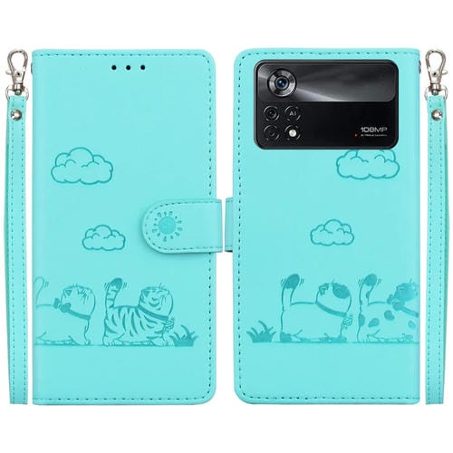Funda de Cuero Rfid con Diseño de Gatos para Xiaomi Poco X4 Pro 5G (Verde)