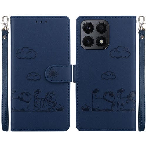 Funda de Cuero Rfid para Honor X8A con Diseño de Gatos (Azul)