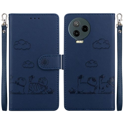Funda de Cuero Rfid para Infinix Note 12 Pro 4G y Note 12 con Diseño de Gatos (Azul)
