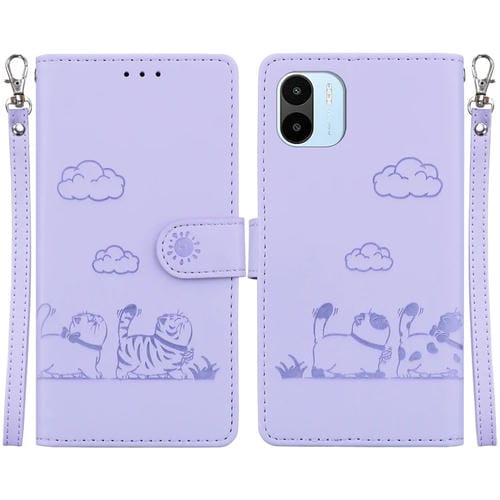 Funda de Cuero Rfid con Diseño de Gatos para Redmi A1/A2 (Morada)