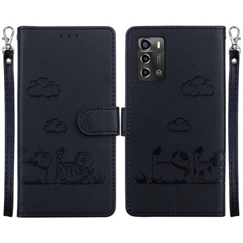 Funda de Cuero Rfid para ZTE Blade A72/V40 Vita con Diseño de Gatos (Negra)
