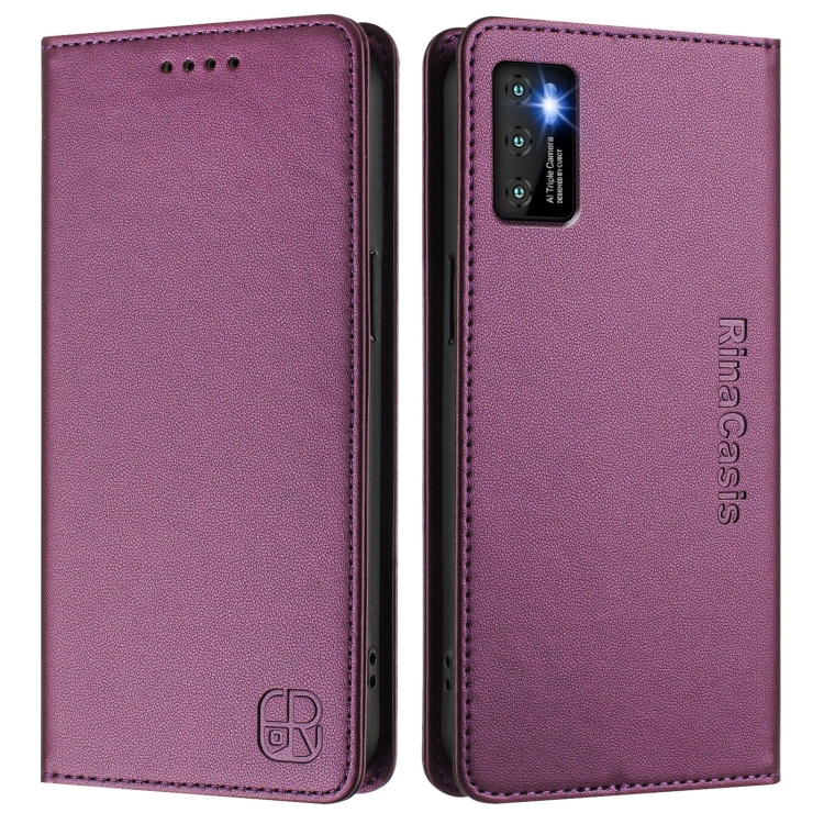 Funda de Cuero Rfid para Cubot P50 Rc01 con Doble Pliegue y Succión Magnética (Violeta)