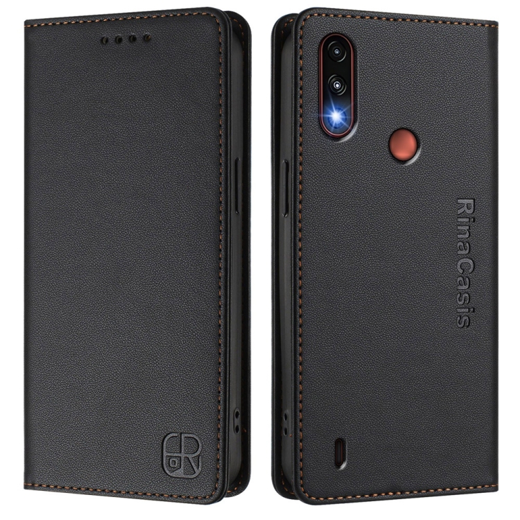 Funda de Cuero Rfid con Doble Pliegue y Succión Magnética para Motorola Moto E7 Power Rc01 (Negro)