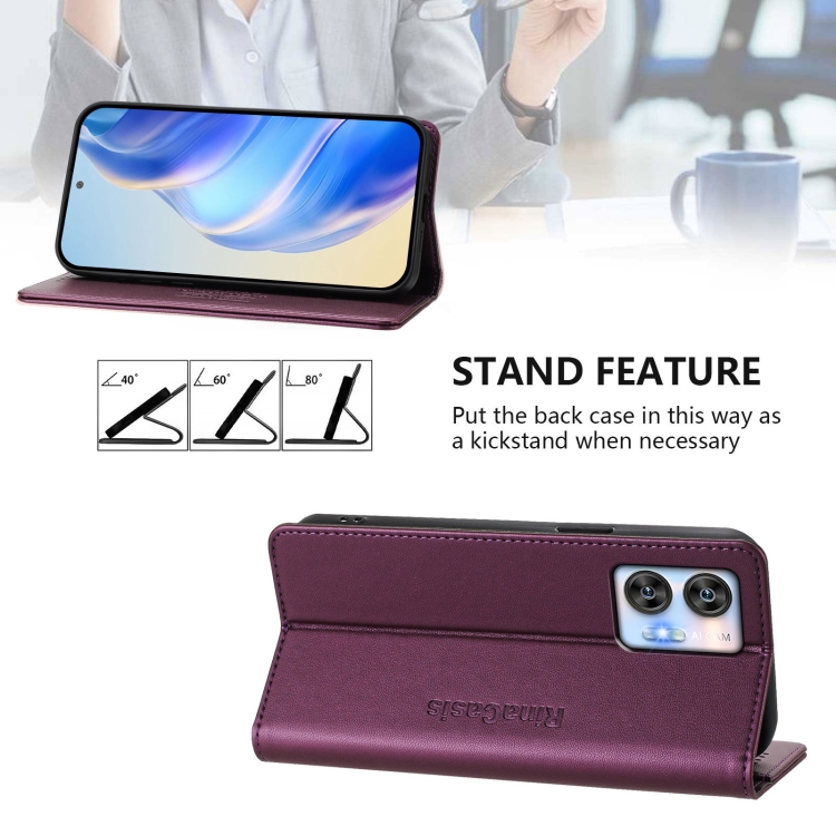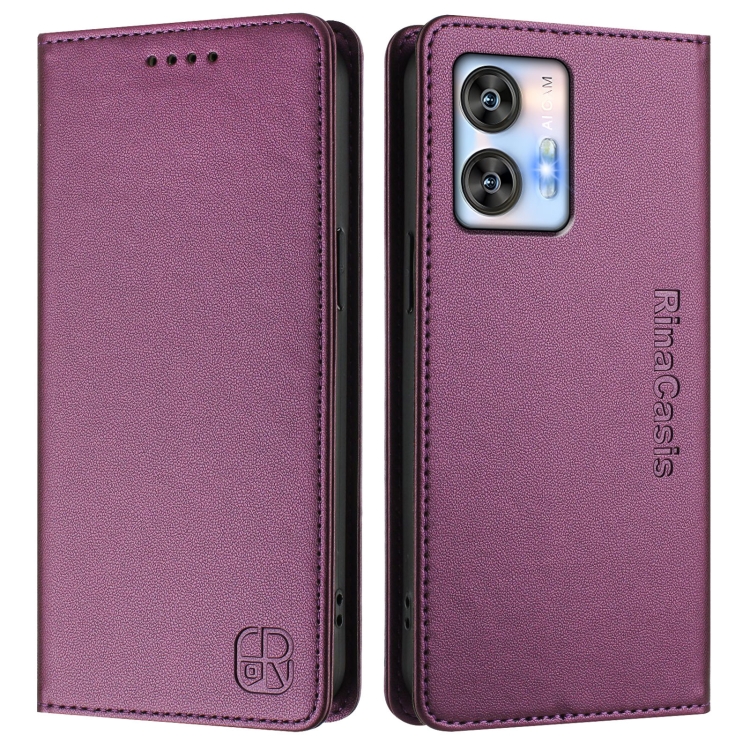 Funda de Cuero RFID con Doble Pliegue y Succión Magnética para Oukitel C35 Rc01 (Violeta)
