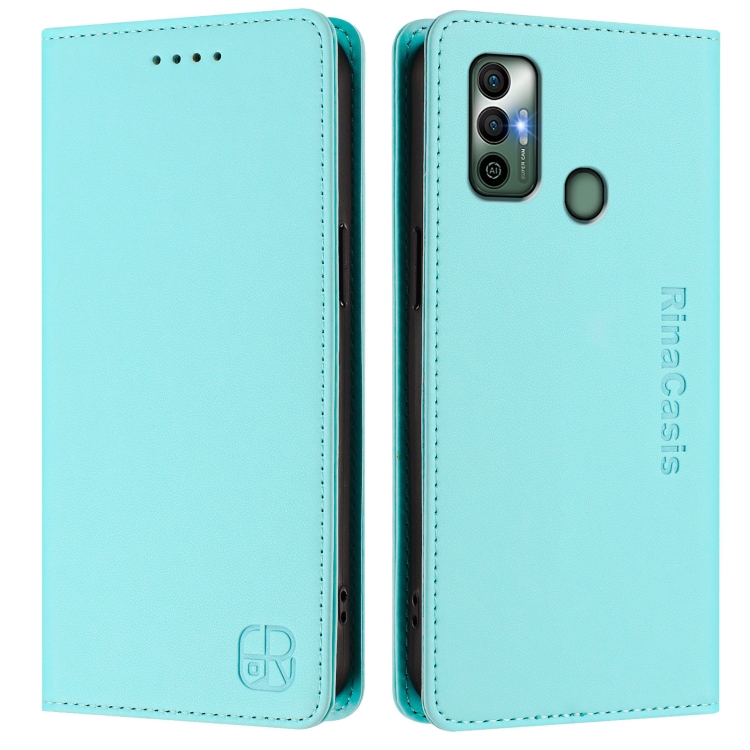 Funda de Cuero Rfid para Tecno Spark 7 / 7T Rc01 con Doble Pliegue y Succión Magnética (Verde Menta)