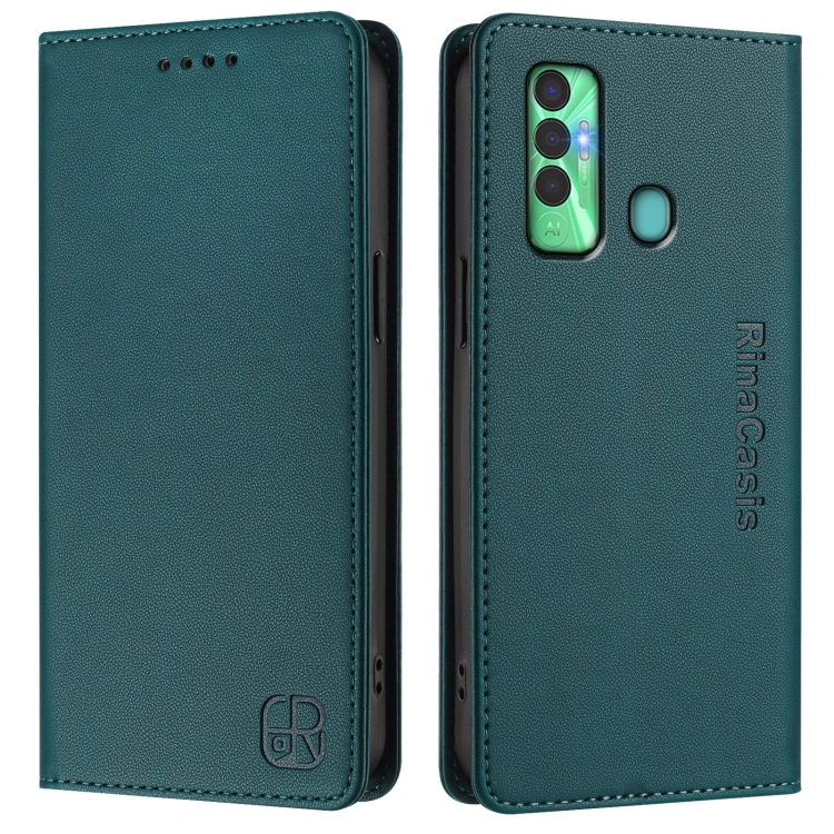 Funda de Cuero Rfid para Tecno Spark 7P Rc01 con Doble Pliegue y Succión Magnética (Verde Oscuro)