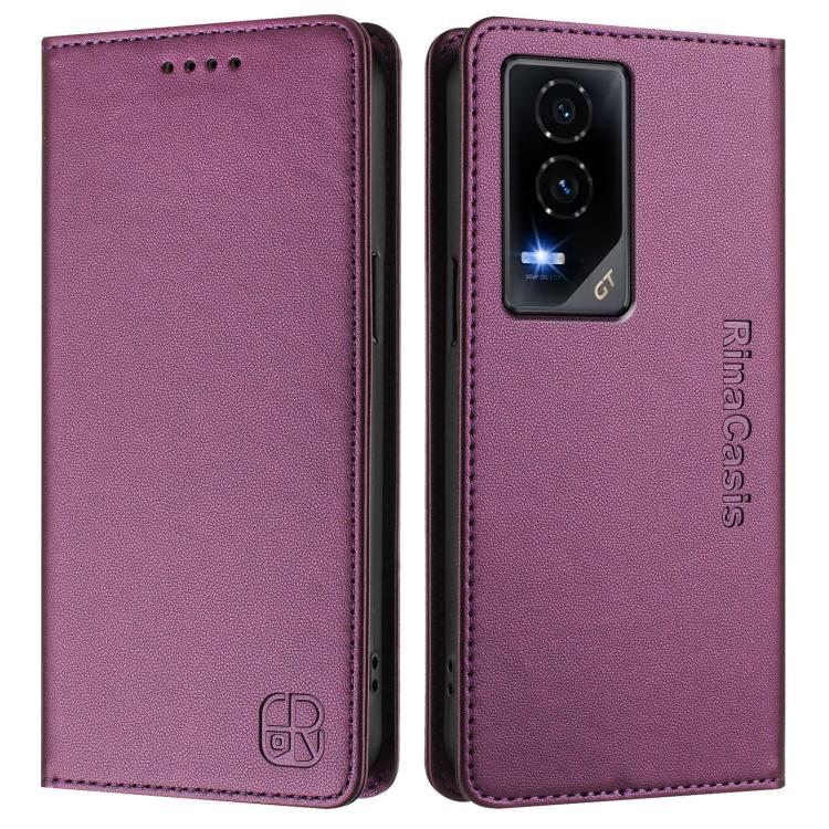 Funda de Cuero Rfid con Doble Pliegue y Succión Magnética para Honor Gt Rc01 (Violeta)