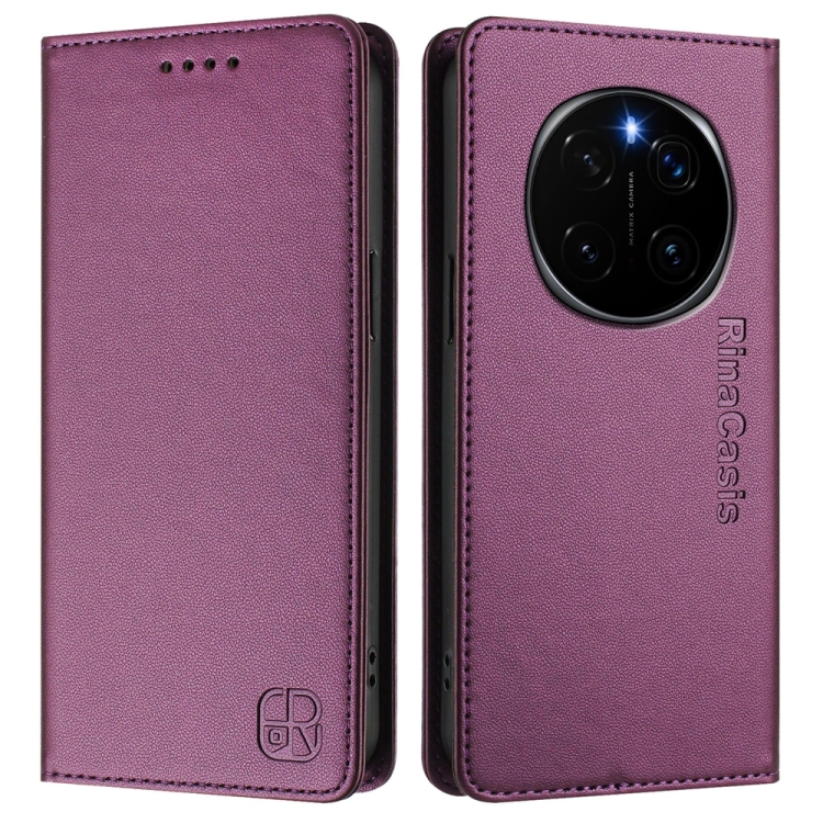 Funda de Cuero Rfid con Doble Pliegue y Succión Magnética para Honor Magic7 Pro Rc01 (Violeta)