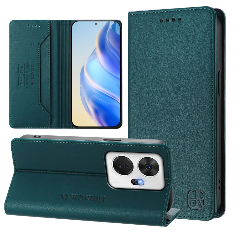 Funda de Cuero Rfid con Doble Pliegue y Succión Magnética para Teléfono Itel P55+ Rc01 (Verde Oscuro)