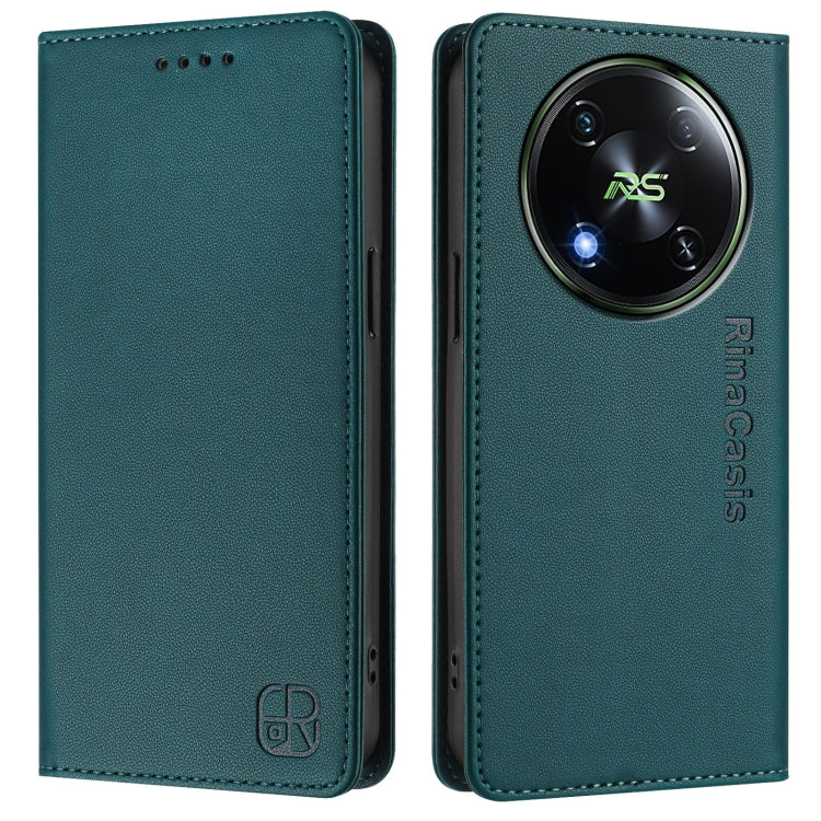 Funda de Cuero Rfid para Teléfono Itel Rs4/S666Ln Rc01 con Doble Pliegue y Succión Magnética (Verde Oscuro)