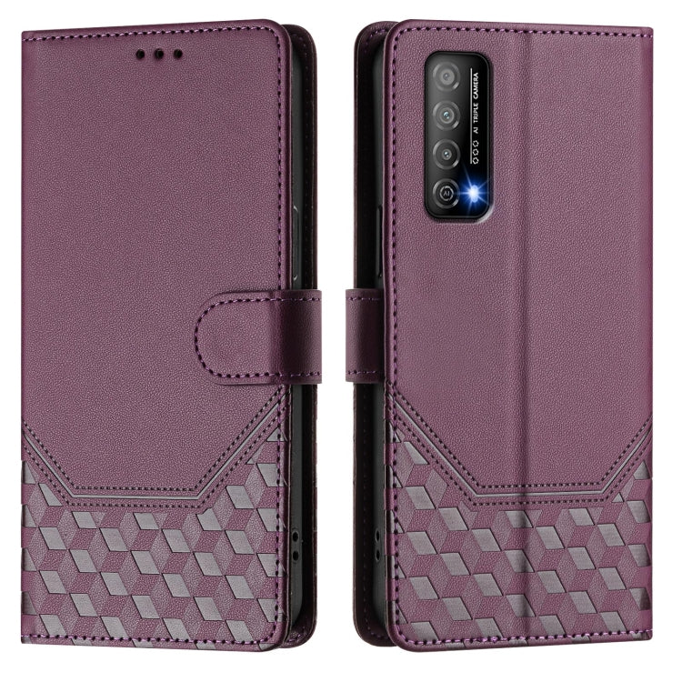Funda de Cuero Rfid con Relieve de Panal para Huawei Enjoy 20 Se/P Smart 2021 (Violeta)