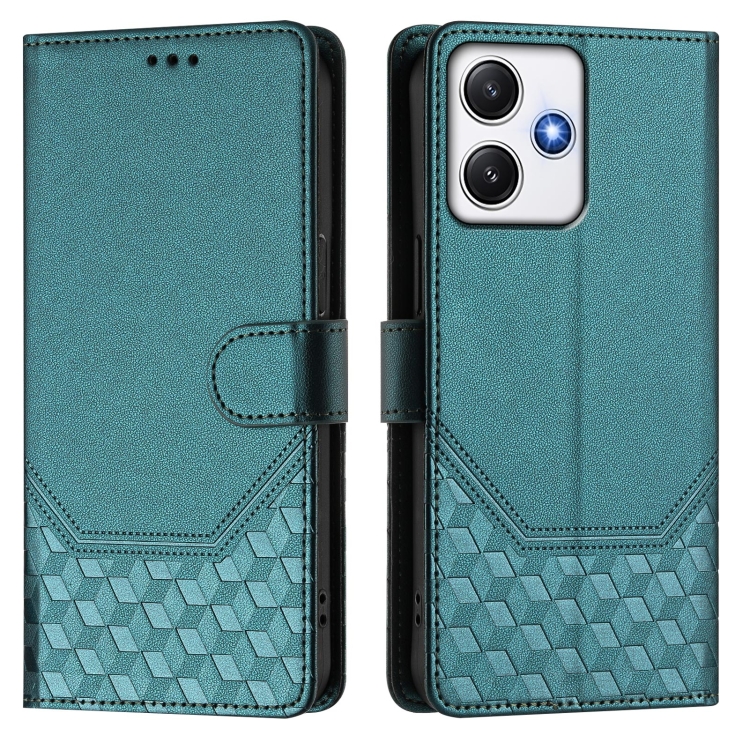 Funda de Cuero Rfid con Relieve de Panal para Redmi 12 5G / 4G Global / Note 12R (Verde Pavo Real)