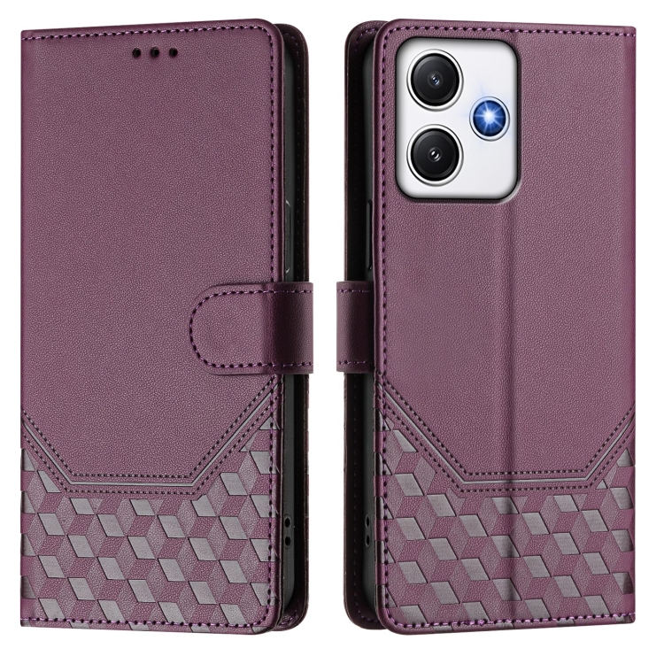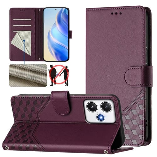 Funda de Cuero Rfid con Relieve de Panal para Redmi 12 5G / 4G Global / Note 12R (Violeta)