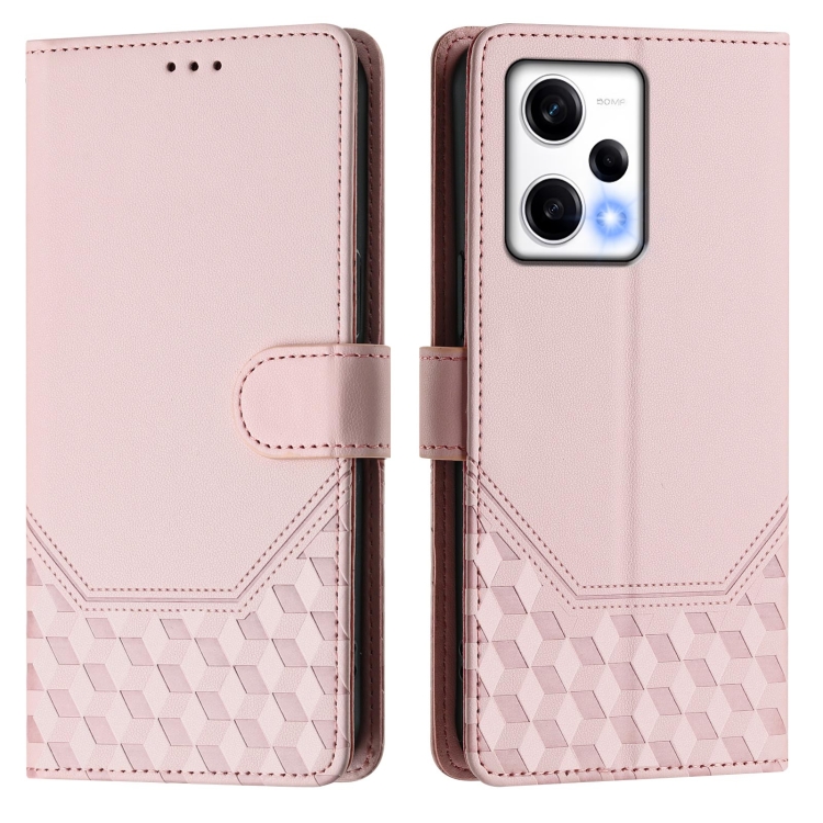Funda de Cuero Rfid con Relieve de Panal para Redmi Note 12 Pro Speed / 12 Pro 5G (Rosa)
