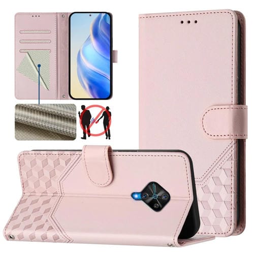Funda de Cuero Rfid con Relieve de Panal para Vivo Y31 4G 2021 India/Y53S 4G (Rosa)