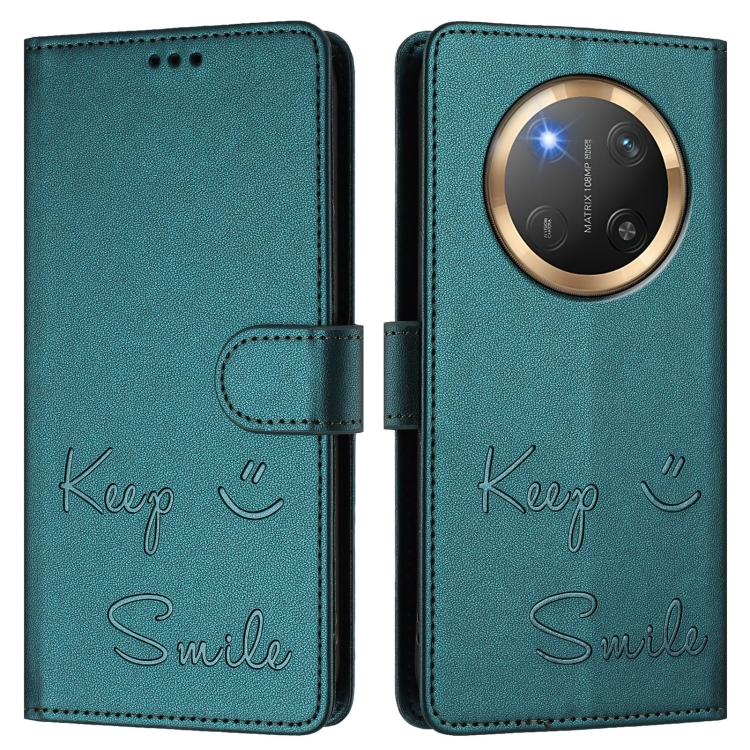 Funda de Cuero RFID con Relieve Sonrisa Global para Honor X9C 5G (Verde Pavo Real)