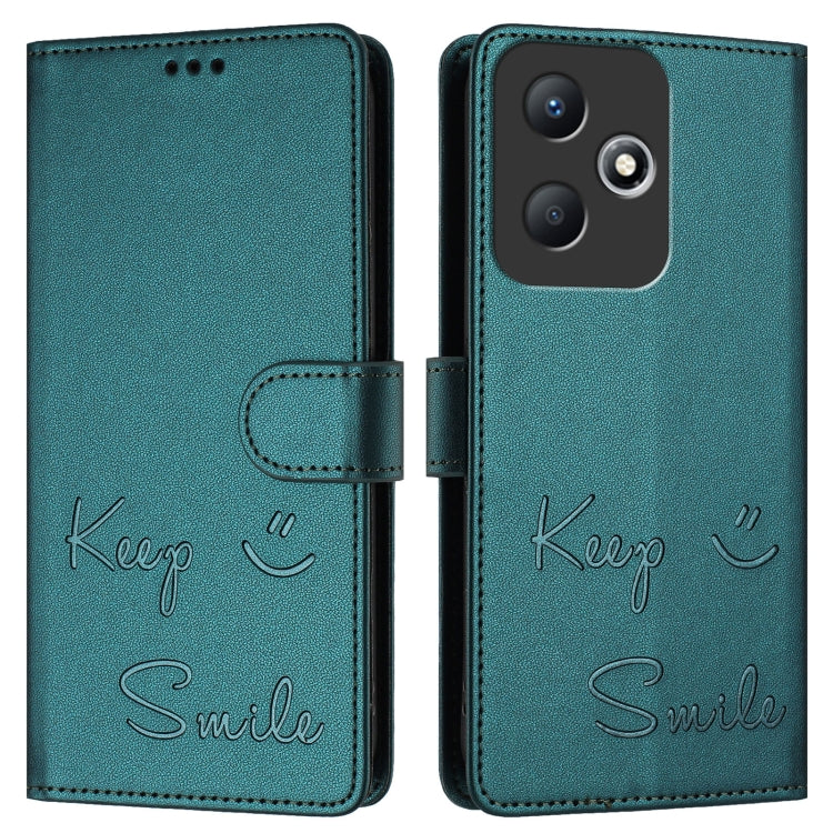 Funda de Cuero Rfid con Relieve de Sonrisa Nfc para Infinix Hot 30 Play (Verde Pavo Real)